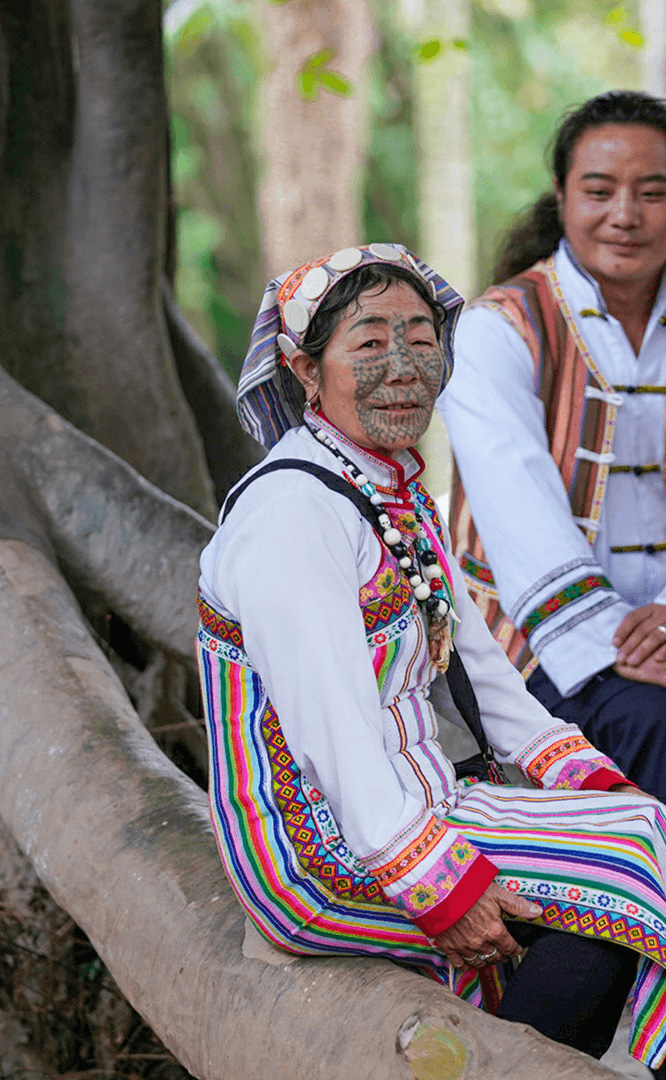德昂族人口約1.7萬,主要分布在德宏州和保山市的潞西、梁河、瑞麗、隴川、隆陽等縣區(qū)。民居多為草排覆頂竹木結(jié)構(gòu)的干欄式建筑,眼前的德昂村建筑納入了能容納數(shù)十人居住的德昂大房子,氈帽頂?shù)男》孔樱€有頗具浪漫色彩的大公房、小公房……還建有“龍陽塔”標(biāo)志及佛教奘房、佛塔。德昂族民間普遍信奉南傳佛教,民俗活動與佛事活動關(guān)聯(lián)緊密。潑水節(jié)、開門節(jié)、關(guān)門節(jié)是重大節(jié)日。德昂族服飾色彩豐富,口頭文學(xué)特別是民歌創(chuàng)作活動...