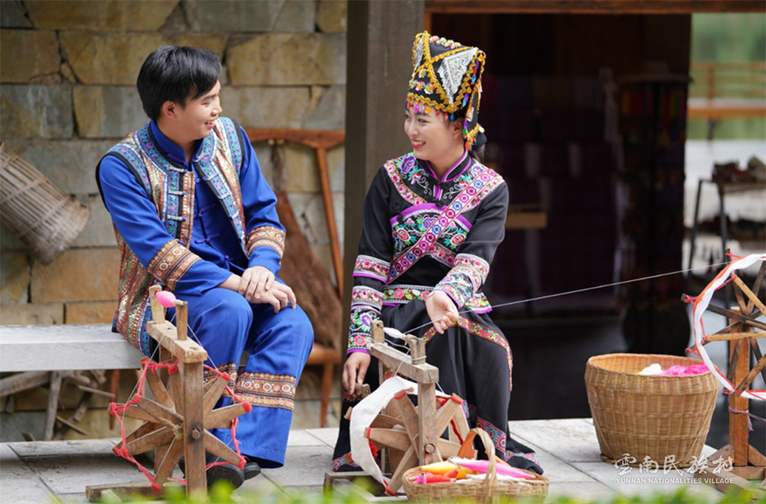 彝族在云南境內(nèi)約471萬人,是省內(nèi)人口最多、分布最廣的少數(shù)民族,主要聚居在金沙江、元江流域和哀牢山、無量山腹地。彝族是一個(gè)能歌善舞的民族,民間打歌、跳樂之風(fēng)盛行,大三弦、跌腳舞久負(fù)盛名?;鸢压?jié)是彝族最具特色的民族節(jié)日。彝族村占地50余畝,三虎浮雕墻與虎頭內(nèi)祖師形象表現(xiàn)了彝族虎鷹文化。太陽歷廣場圖騰柱上有太陽、虎、火和八卦圖形象,周圍環(huán)繞著10個(gè)朝向不同的月球造型,外圓周有12生肖石雕。依山而建的“...
